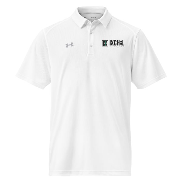 Ixchel White Under Armour® men’s polo with Green Pluse